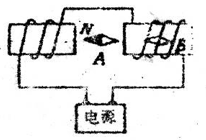 12.接通电源后小磁针A、B静止在如图位置。试标出电源的正负极和小磁针B的“N”极。