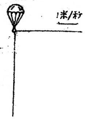 16.某跳伞原在没风时以v1=4 m/s匀速下降,现风使他以v2=3 m/s匀速水平东移,作图求出它的合速度v。
