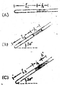 (3)保持空气柱温度不变,当玻璃管与水平面成30°角倾斜放置时(图B),空气柱强度p2和长度l2各为多少?