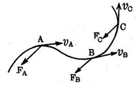 12.质点沿曲线运动,经过A、B、C三点,速度分别是vA、vB、vC,所受的合力分别是FA、FB、FC,它们的方向如右图所示。其中合力方向画得不正确的是________。