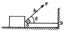 15.右图中物体右端有一个质量不计的光滑定滑轮,细绳的一端系在墙上B点,OB呈水平状。另一端A绕过定滑轮,受恒力F作用,F始终与OB成θ角,在物体沿水平地面移动位移s过程中,恒力F做功大小是_________。