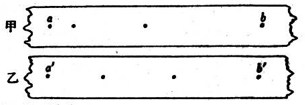 (2)图示为同一打点计时器正常工作时打出匀加速运动的甲、乙两条纸带,每条纸带4个连续点,且ab=aʹbʹ,从图中可知:加速度a甲________a乙,平均速度\({\bar v_甲}\) _____\({\bar v_乙}\)(填“>”、“=”或“<”)