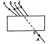 32.用插针法测定玻璃折射率时,有四条入射光线a、b、c、d,若经玻璃砖折射后的出射光线是OA,如右图所示,实验时的入射光线应是( )