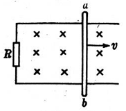 35.如图所示,光滑金属轨道固定在水平面内,导轨间的距离20 cm。匀强磁场垂直于导轨平面,磁感应强度B=1 T,电阻R=2 Ω,导轨和可动导体ab的电阻均不计,当导体ab以10 m/s速度匀速向右移动时。求: